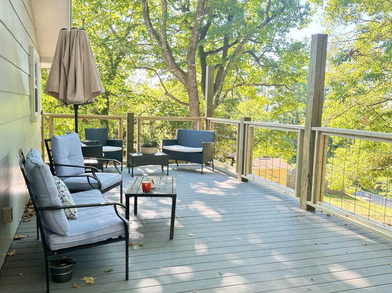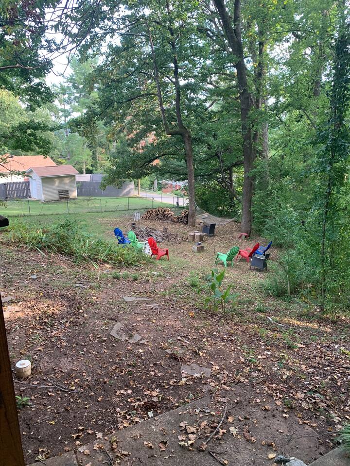 Wooded area. With minimal neighbors. Quiet and peaceful